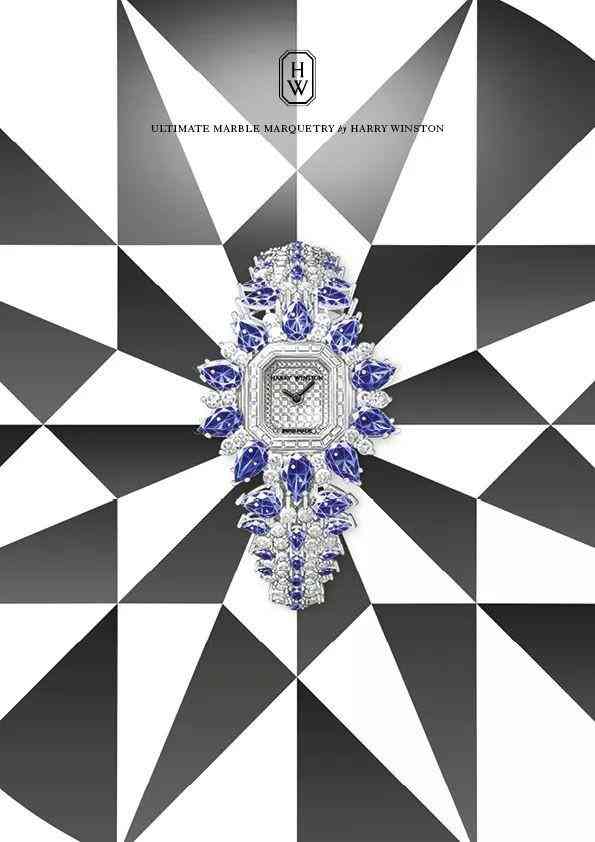 另一個(gè)令人印象深刻的系列是Marble Marquetry高級珠寶腕表。鉑金打造,鑲嵌藍(lán)寶石與鉆石,圖案設(shè)計(jì)靈感來自海瑞溫斯頓紐約旗艦店的大理石地板星形紋路。