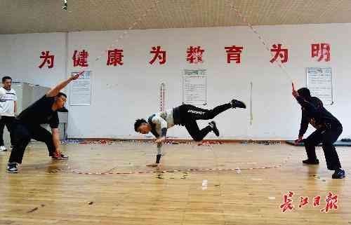 近些年,來中南民大取經(jīng)學(xué)習(xí)花式跳繩的人越來越多。中南民大也在全省和武漢市進(jìn)行了各種形式的推廣工作?!跋顸S石中英文學(xué)校把花樣跳繩當(dāng)成全校師生必練的項(xiàng)目。每周每月都有比賽。除了這種全校開展的形式,我們幫有的學(xué)校建立了花樣跳繩隊(duì);幫有的學(xué)校是成立了花樣跳繩社團(tuán);還有學(xué)校把跳繩列入了體育課或者大課間?!睂O貴龍說,“在武漢市我們?nèi)ミ^的學(xué)校至少也有四五十家了。特別是前段時(shí)間‘雙減’政策剛出臺(tái)時(shí),我們這里接待的中小學(xué)校長(zhǎng)就有幾十人?!?/p>