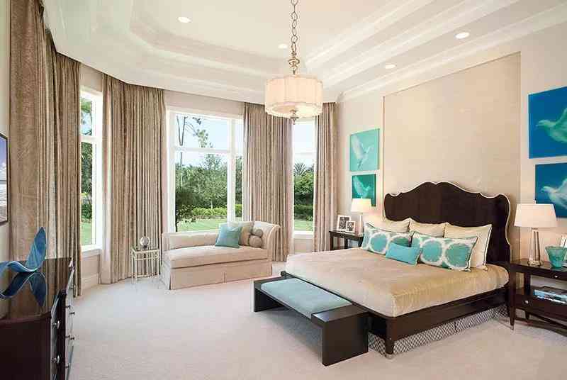 無論是大面積利用或小部分點綴,Tiffany blue與亮白混合都能恰到好處地突出設(shè)計利落大方的一面。亮白比例增多無疑為整體環(huán)境注入清爽整潔之氣,與之搭配的布藝和家具以及裝飾陳列多以簡約休閑為主,融合其中色彩,淡雅如鳥蛋綠、平和之百靈鳥色,沙色地毯更能將這股寧靜無憂的氛圍保留起來。