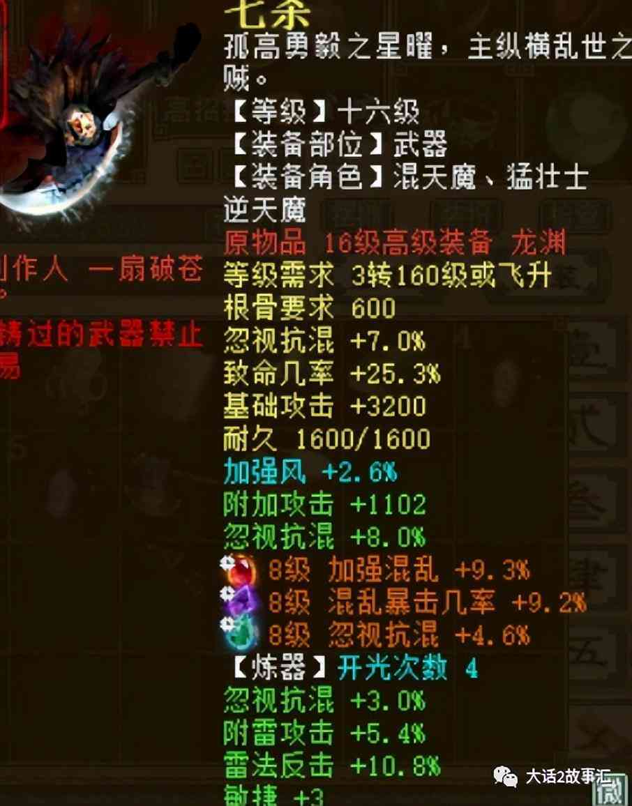武器是十六級裝備,底子是忽視抗混加7,煉化效果忽視抗混加8,煉器是忽視抗混加3,敏捷加3,這樣的武器屬性雖然很不錯,但是并不昂貴。寶石就非常優(yōu)秀了,三顆八級寶石,加強混亂9.3,忽視抗混4.6.
