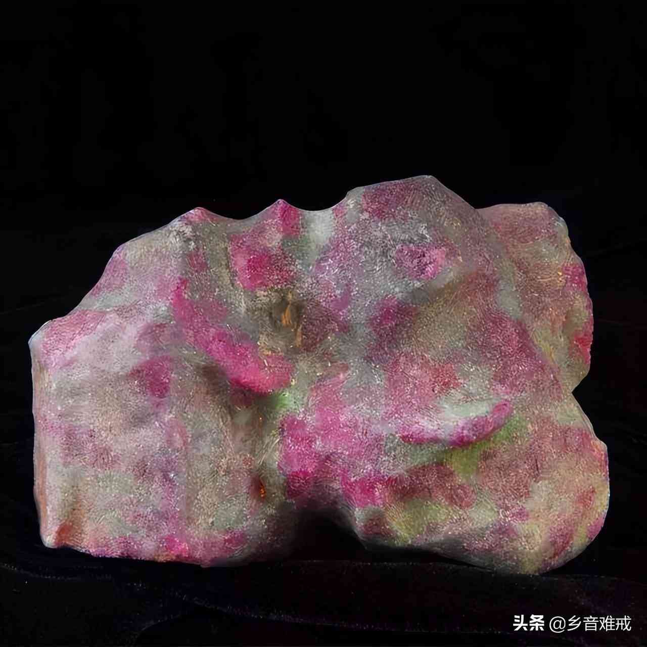 極品荔枝凍石,石性凝結(jié),透明度強(qiáng),晶瑩透澈,紅、黃、白、黑各色俱有,艷麗無比,肌里有粗蘿卜絲紋,有些原石還有黃色皮。以色澤論,荔枝洞石無疑艷壓群石,堪稱。