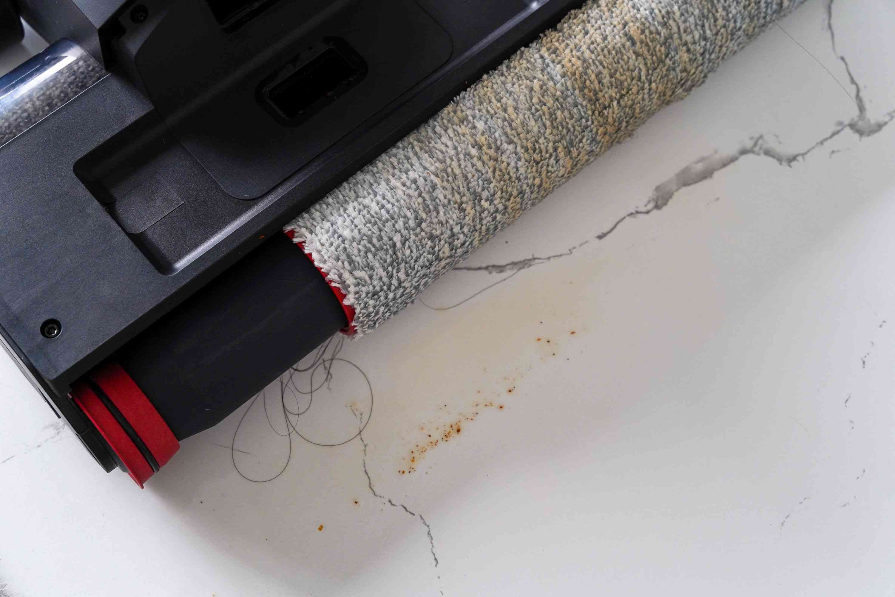 部分洗地機(jī)在拖地時(shí)候會(huì)經(jīng)常發(fā)生看似把垃圾吸掉了,其實(shí)一部分垃圾藏在滾刷底部被推著往前,拖久了,底部會(huì)有不少殘留,甚至有邊拖邊吐的情況。