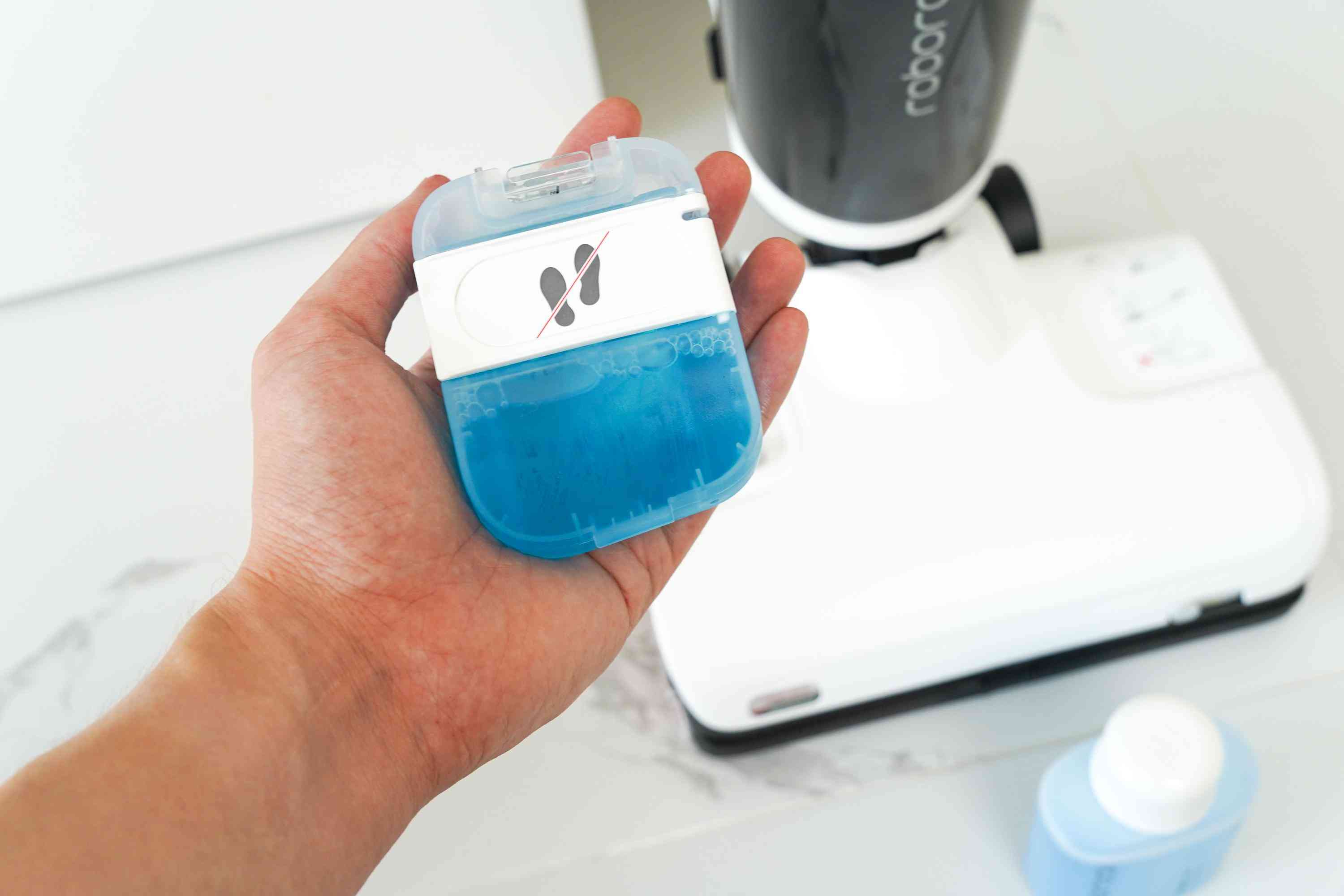 滿盒的清潔液大約可以匹配20盒清水,如果每次清潔用不完一整盒的清水,加滿一次清潔液就能提供20次以上的清潔。