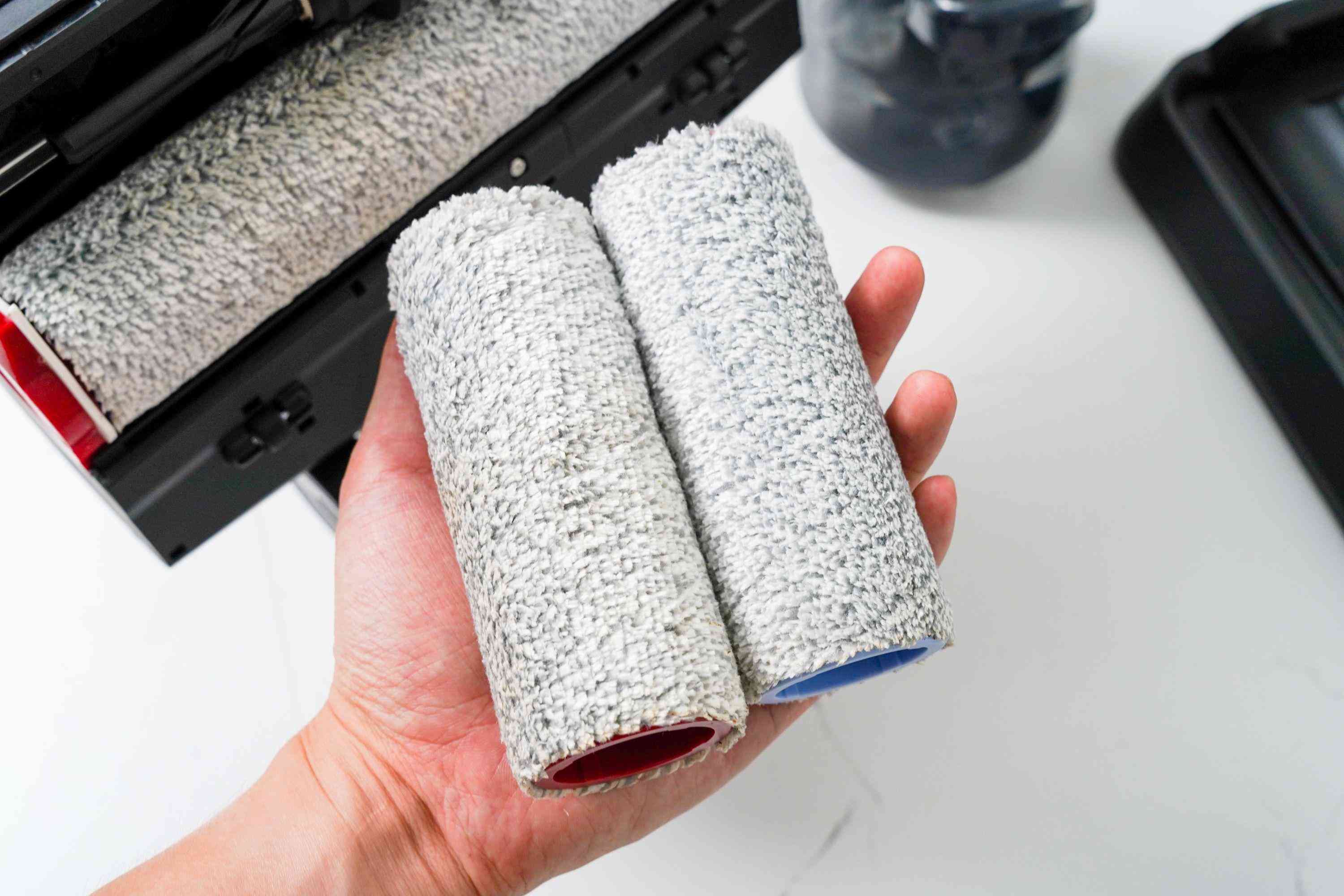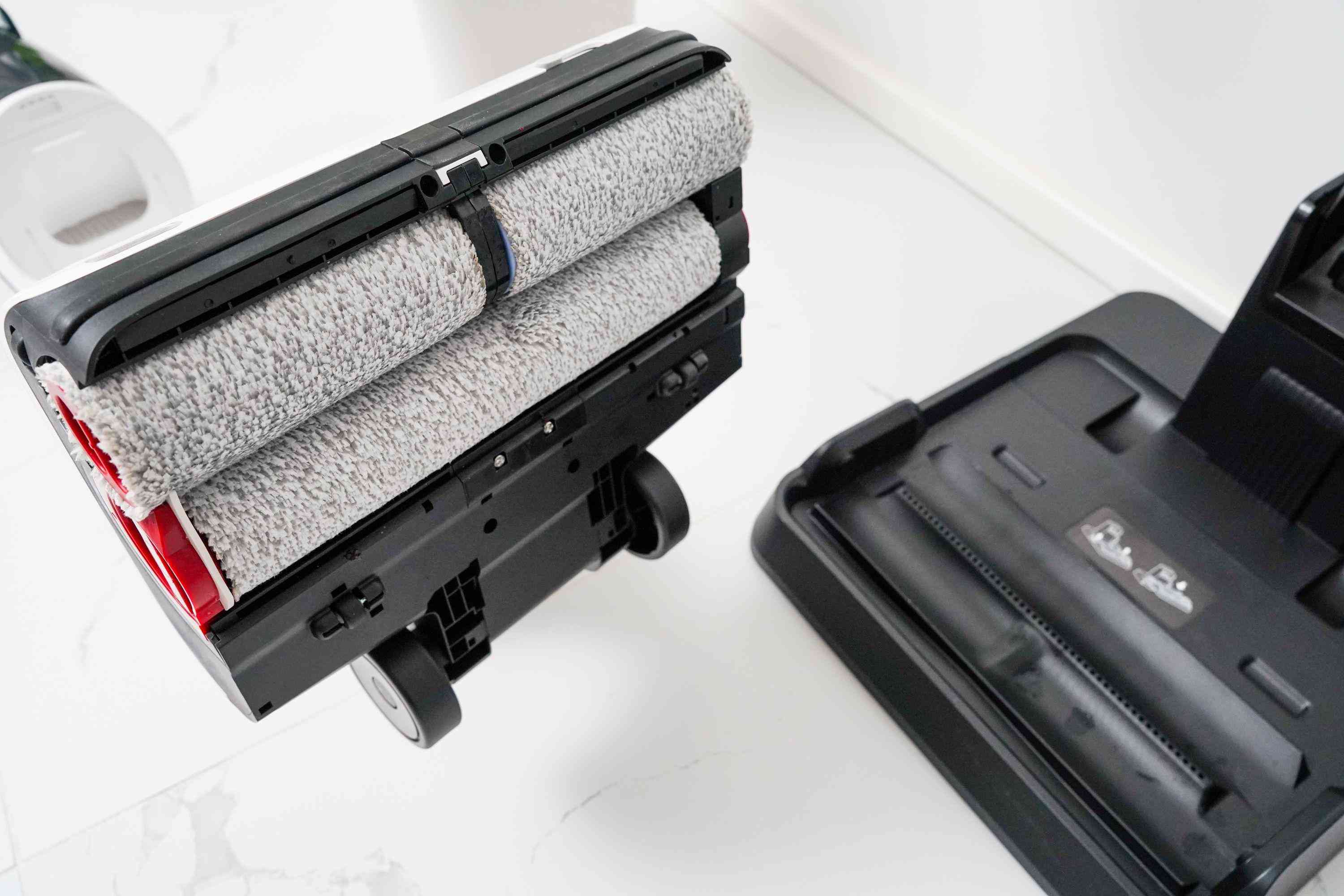 自清潔之后,滾刷、刷頭內(nèi)側(cè)、底座都挺干凈的。