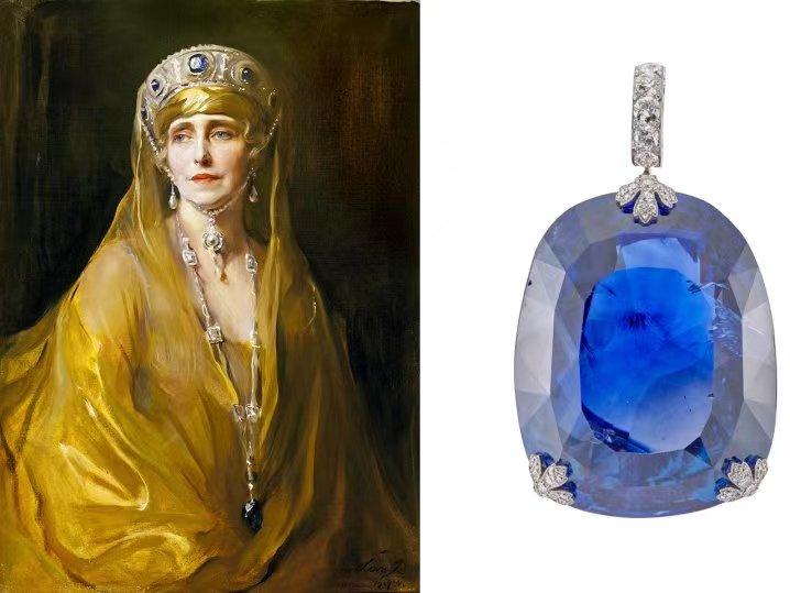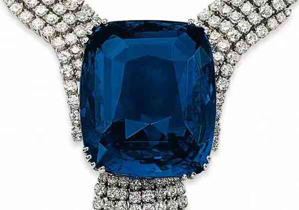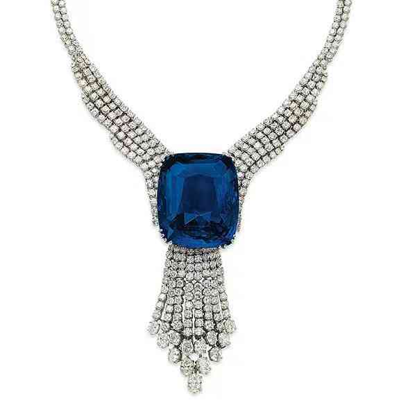 它于1913年在卡地亞的工作室首次被發(fā)現(xiàn)。這條吊墜項鏈是世界五大藍寶石之一,重 478.68 克拉。上一次拍賣是在2003年的佳士得,售價為2,105,667美元。在成為希臘王室收藏的一部分之前,它于1947年出售給海瑞溫斯頓。