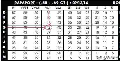 1、看裸鉆重量范圍落在哪個(gè)克拉重區(qū)間。比如重量范圍落在區(qū)間 0.50- 0.69 CT