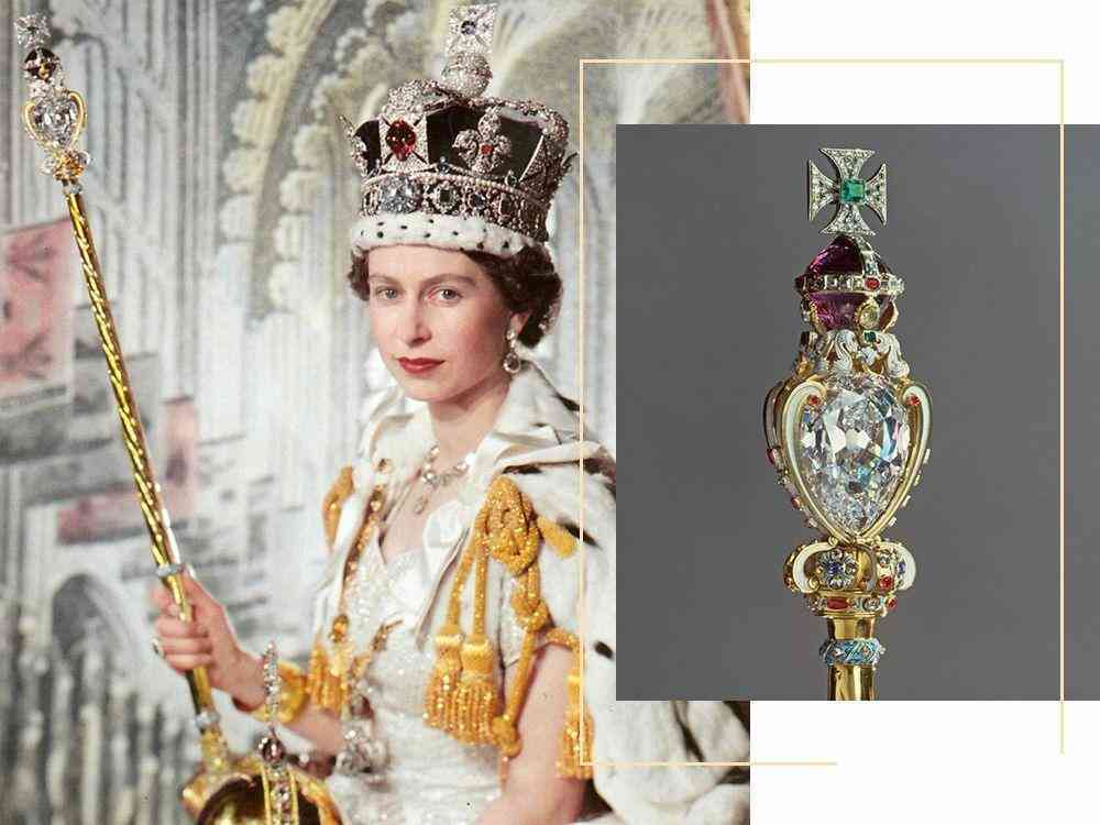 非洲之星后來被切割成大大小小上百顆鉆石,其中最大的一顆,530克拉,74個(gè)刻面,被鑲嵌在英國王室權(quán)杖上;第二大的一顆,317克拉,64個(gè)刻面,鑲嵌在王冠上。