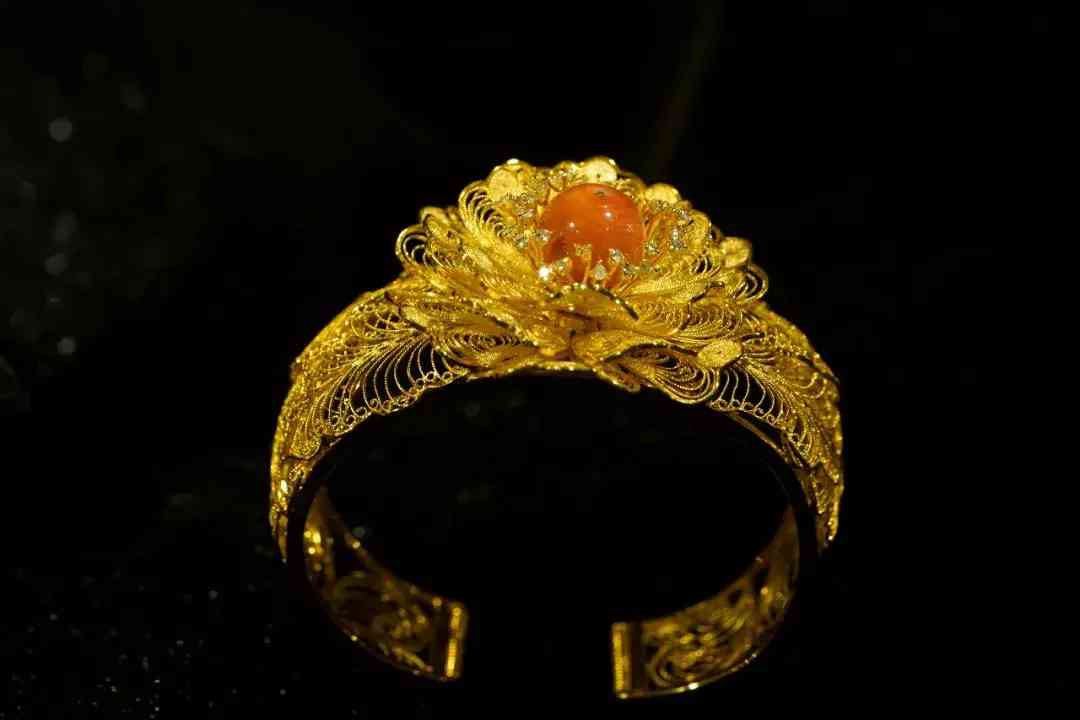 18k金花絲珊瑚牡丹手鐲