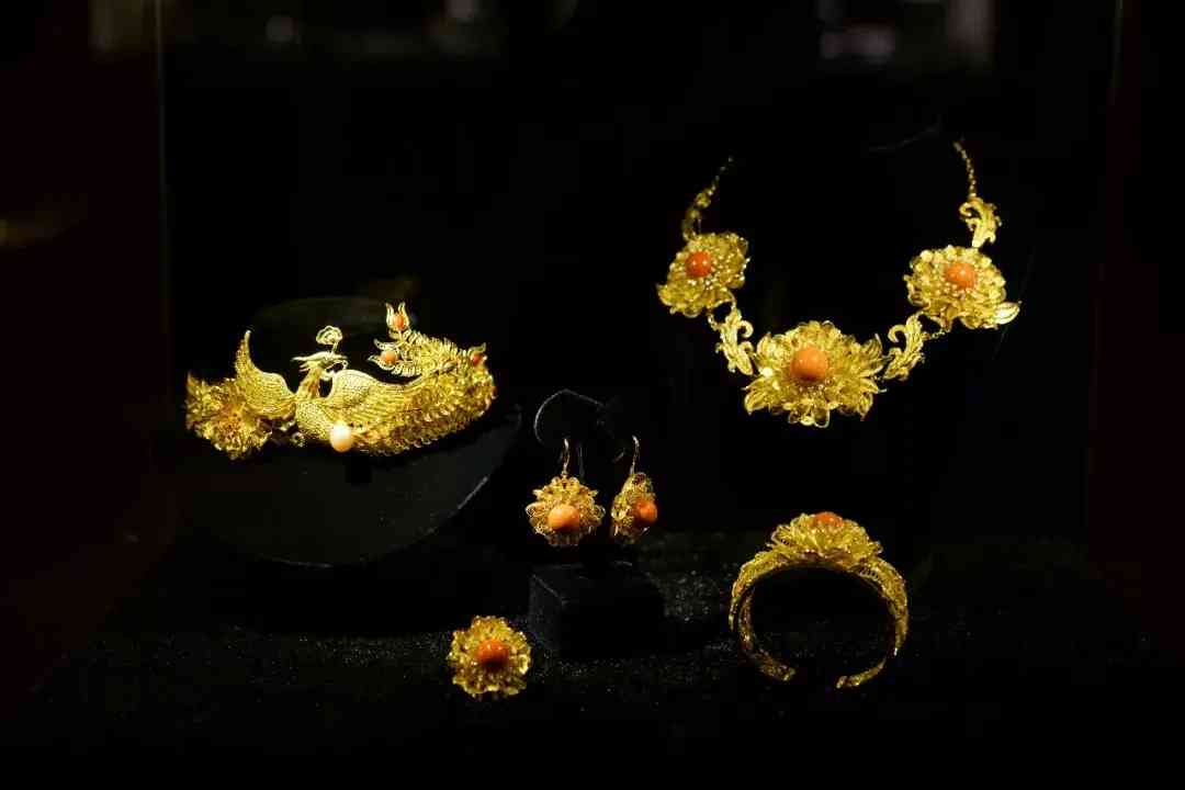 18k金花絲珊瑚牡丹花嫁套件