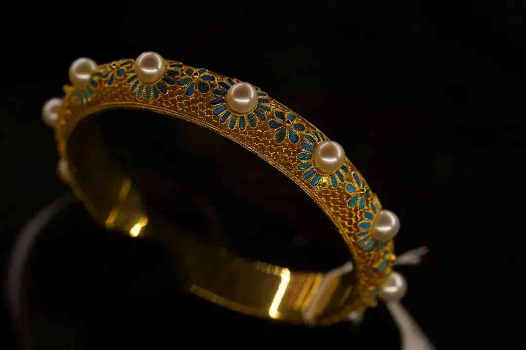 18k金花絲點翠珍珠手鐲