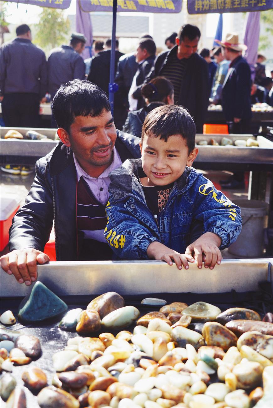 在和田玉的交易市場,也許是周末的緣故,看到很多小朋友和大人一起出攤,從小耳濡目染,和田玉的品相她們應(yīng)該也懂得一二了。