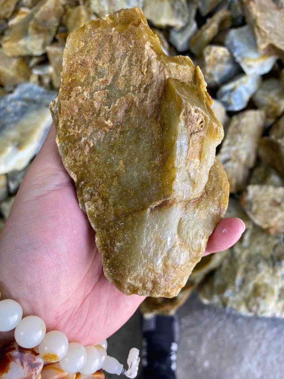目前新疆最大的山料產地是且末,且末產的山料有一個很大的特點,就是具有良好的油潤性,脂粉好,能玩出包漿,有些甚至能和籽料相匹敵。