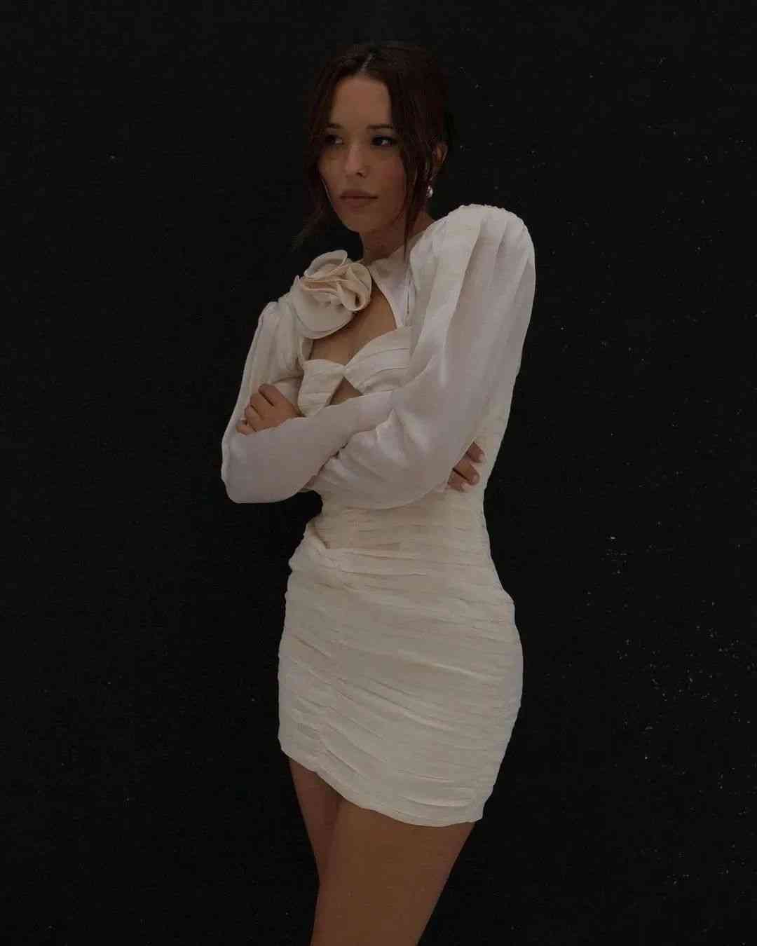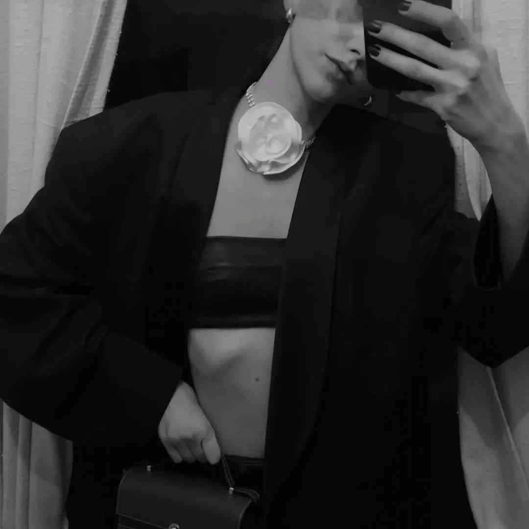 如果只想淺嘗,拍拍照營造氛圍,像Lívia Nunes Marques選朵小的就行,不至于把脖子“吃掉”,還顯得精致利落許多。