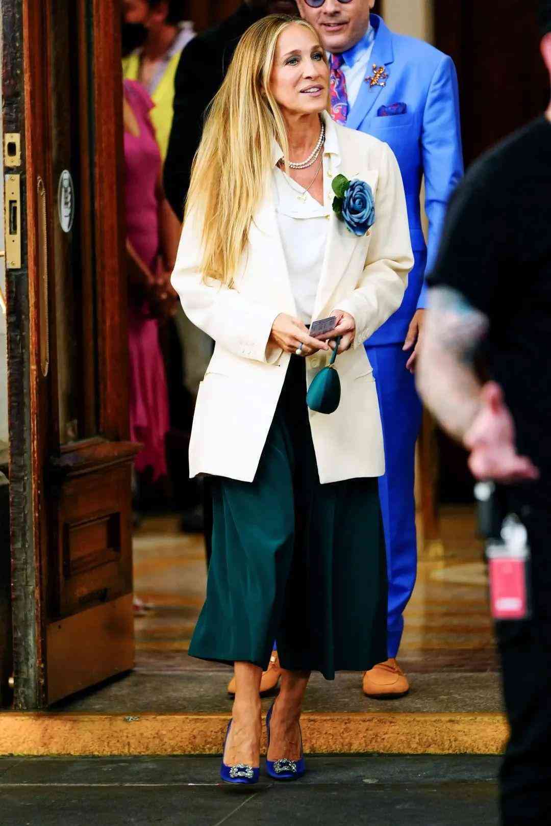 而且,這種立體花朵配飾也一直是Sarah Jessica Parker本人的最愛。之前接受采訪她就說過,這么多年下來,家里的別針花收藏已經(jīng)多到塞滿一柜子。