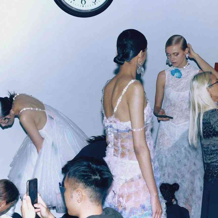 同樣來自意大利的Philosophy Di Lorenzo Serafini,把溫潤的珍珠換成耀眼的水鉆,自帶迪斯科濾鏡效果。