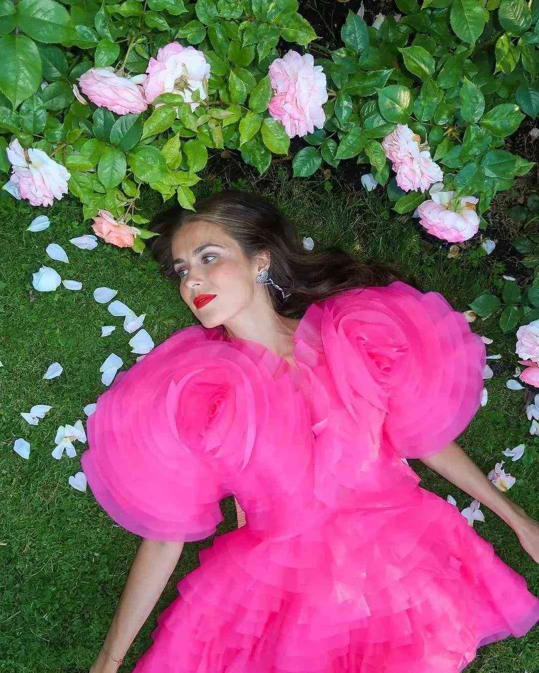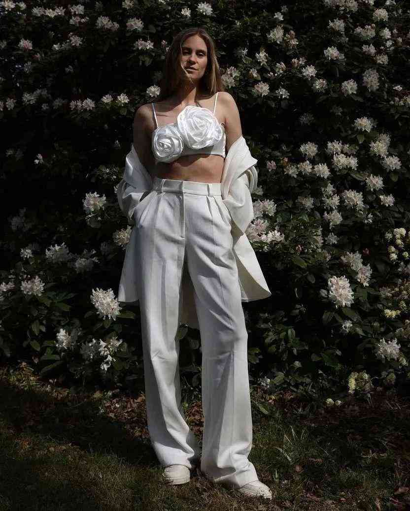 更低調(diào)一些,可以學(xué)學(xué)法國博主Lucia Cuesta,把花朵放在頭飾上。
