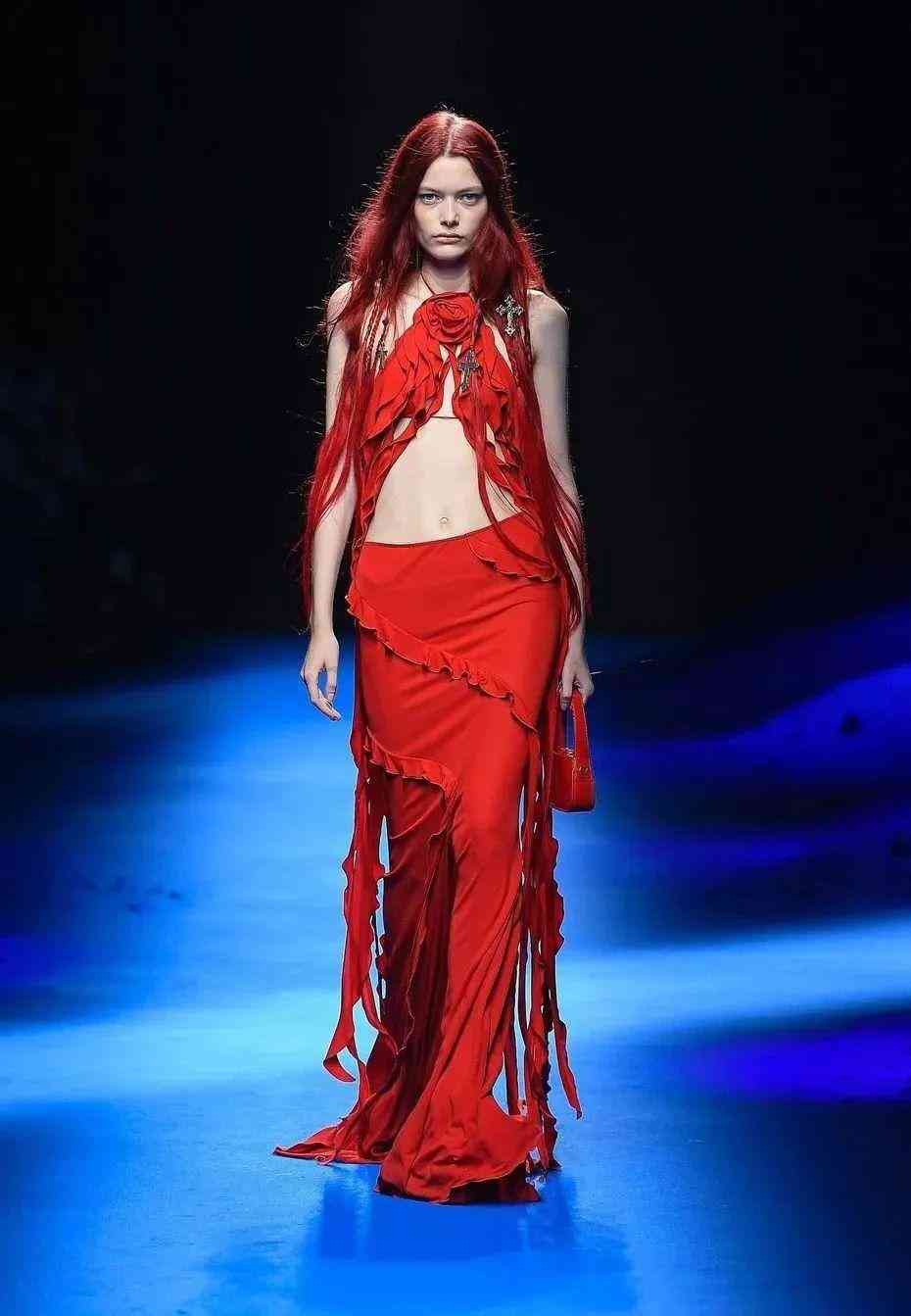 類似風(fēng)格的還有Blumarine,一季走的是暗黑哥特人魚主題,仿佛穿上就能變成自由穿梭在海底的女妖精。