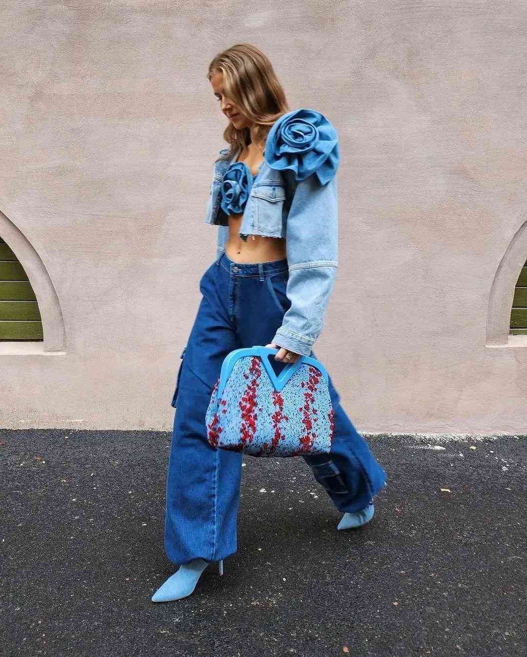 她還特別心靈手巧,竟然和媽媽手把手DIY了一整套牛仔立體花Look,穿到時裝周上驚艷四座。