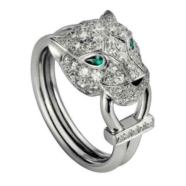 介紹完卡地亞和蒂芙尼,最簡單經(jīng)典款式對戒了,不知道朋友們認為那個款式好看呢?雖然我自己也戴有LOVE戒,但是我最喜歡的是另一款:Panthère de Cartier戒指,K金鑲嵌鉆石,眼睛是鑲嵌的祖母綠,很漂亮,但是價格太貴了,要14萬多。