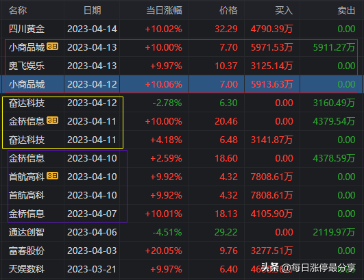 打開上榜記錄,該席位最近在小商品城、奮達科技、金橋信息有一日游操作上榜。