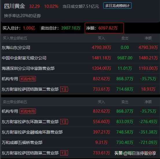 四川黃金,流通市值19.37億,全天成交7.51億,換手率39.65%。