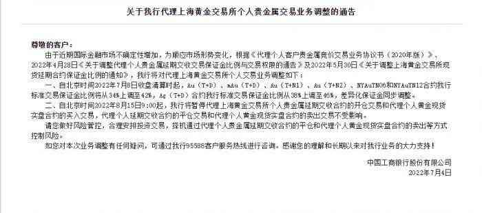 7月4日,工商銀行稱,將對(duì)代理上海黃金交易所個(gè)人交易業(yè)務(wù)進(jìn)行調(diào)整。