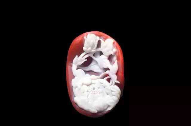 這類的南紅就是在同一塊石料上同時(shí)有著白色和紅色兩種對(duì)比鮮明的顏色,高品質(zhì)的紅白料紅色部分應(yīng)該是純色的柿子紅,白色部分呈現(xiàn)出膠質(zhì)感比較強(qiáng)的乳白色,這種紅白料最大的價(jià)值就是用來雕刻。