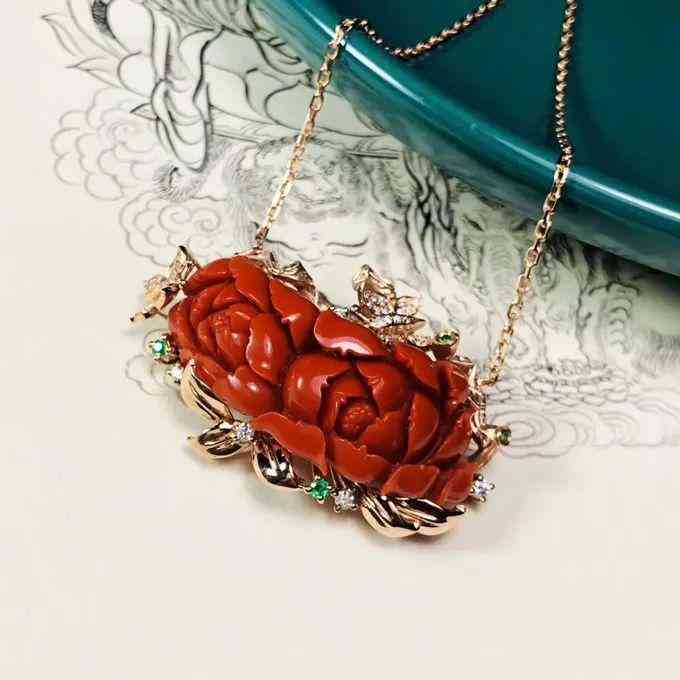 玫瑰紅在南紅的色系種類中算是很有特色的,它大多和柿子紅一起,全玫瑰紅的比較少,顏色相比柿子紅偏深紅一些,透光度也比柿子紅要高些。