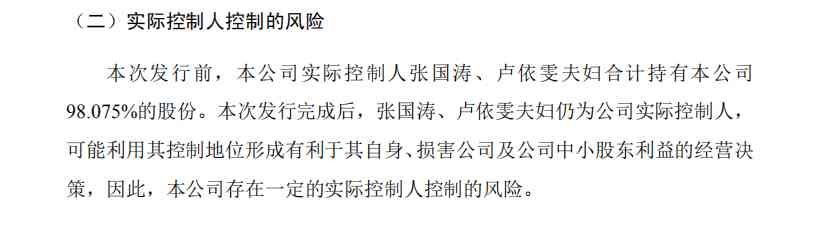 迪阿股份提示風(fēng)險(xiǎn)稱,“公司實(shí)際控制人可能利用其控制地位形成有利于其自身、損害公司及公司中小股東利益的經(jīng)營決策”