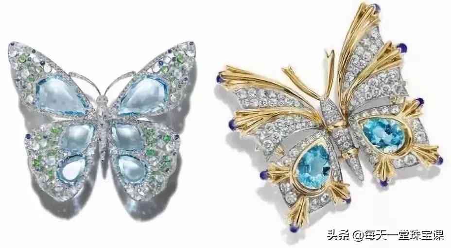 △其實(shí)淺色的海藍(lán)寶石也很好看啊~這2只蝴蝶胸針都是蒂芙尼的作品