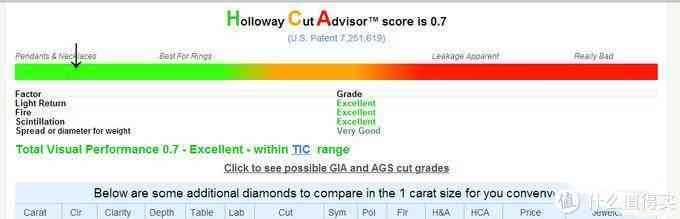 不過莫桑石的色散值高于鉆石,也就是我前面攻略提到的“火彩值”,通俗點說就是莫桑石更閃。如下圖HCA測起來個個都是接近1.0,Light Return、Fire、Scintillation三項EX拉滿。