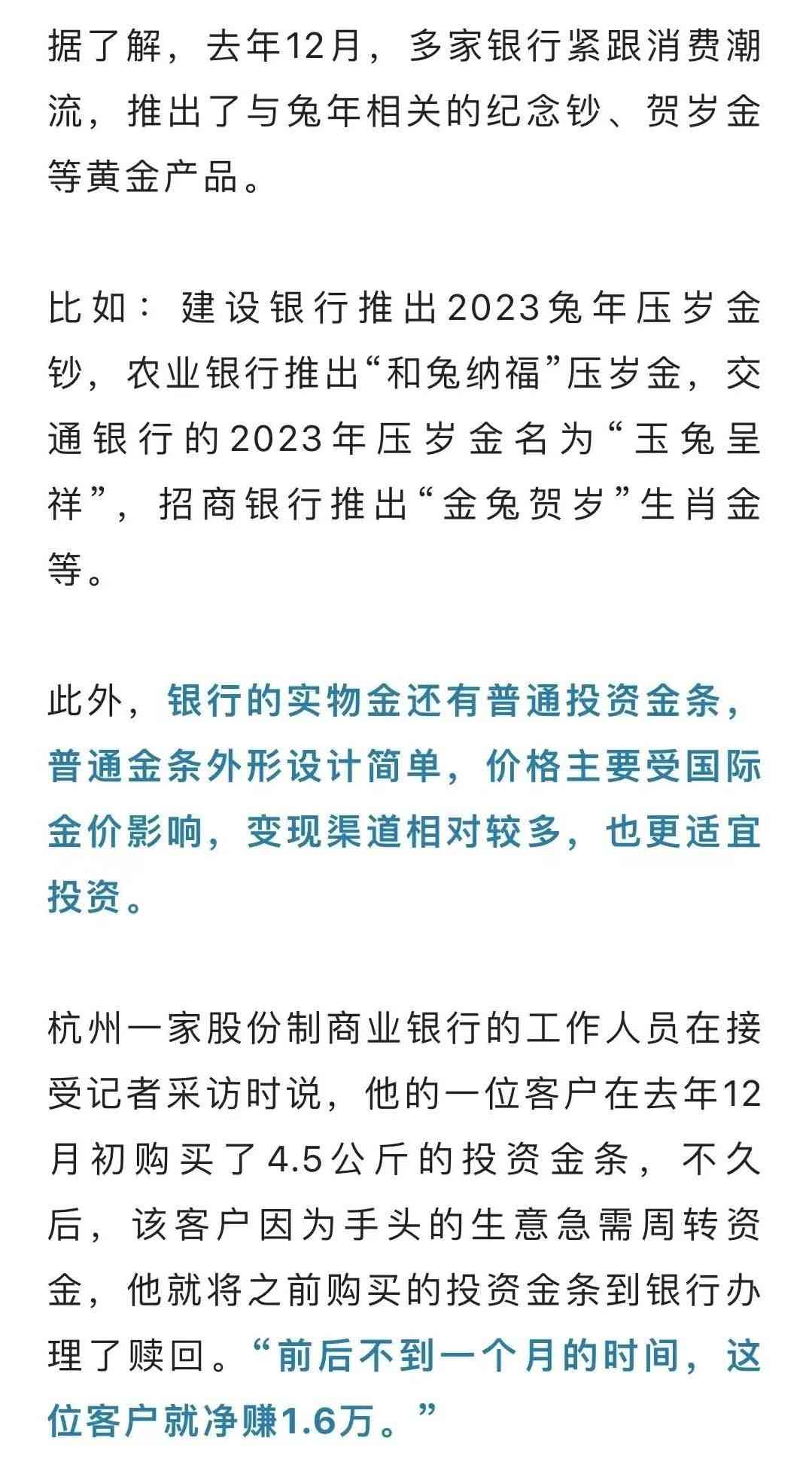 購買投資金條不到一個月
