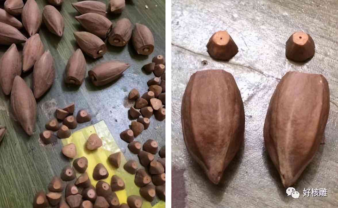 核尖規(guī)避了橄欖核易裂的風險(小了嘛),又比核壁厚,盤玩起來油性大上色容易。從18、19年就已經(jīng)出現(xiàn)在市場上,去年開始達到了市場的高峰,文玩愛好者和商家蜂擁而上。