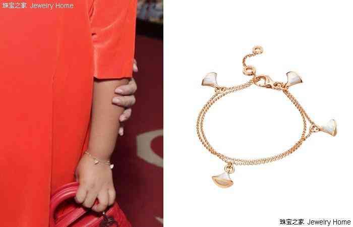 經(jīng)珠寶之家觀察,這條手鏈來自寶格麗的經(jīng)典系列,對(duì)于鳳凰網(wǎng)娛樂指出的“兩條手鏈值5萬元”這一說法,小編實(shí)在無法辨認(rèn)另一只手上的手鏈究竟是哪個(gè)款式,在這里就不做過多猜測(cè)了。