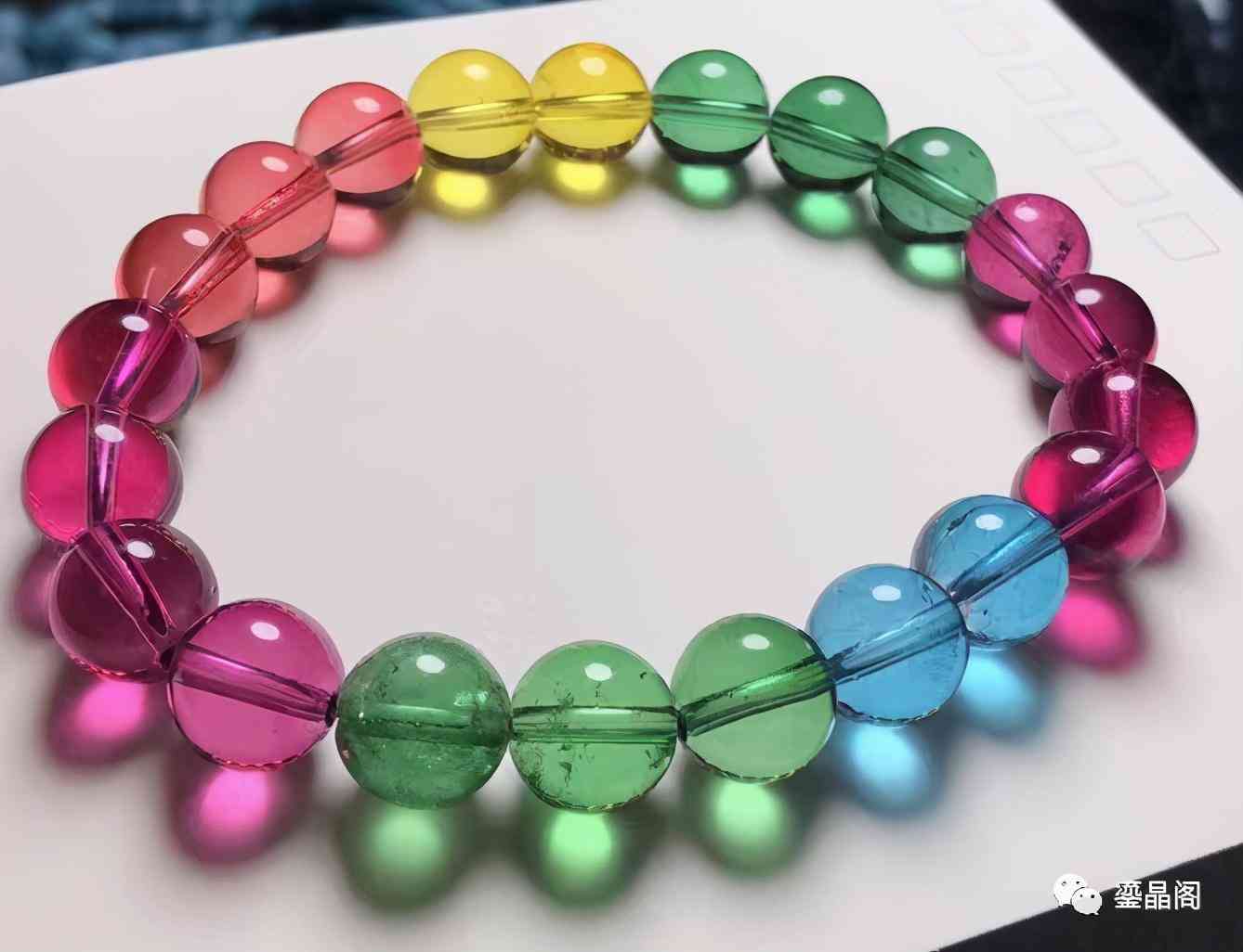 這種經(jīng)過高溫加色的水晶,材質(zhì)本身是天然水晶,稍微改了下顏色,不是很好辨認(rèn),最容易讓人防不勝防。