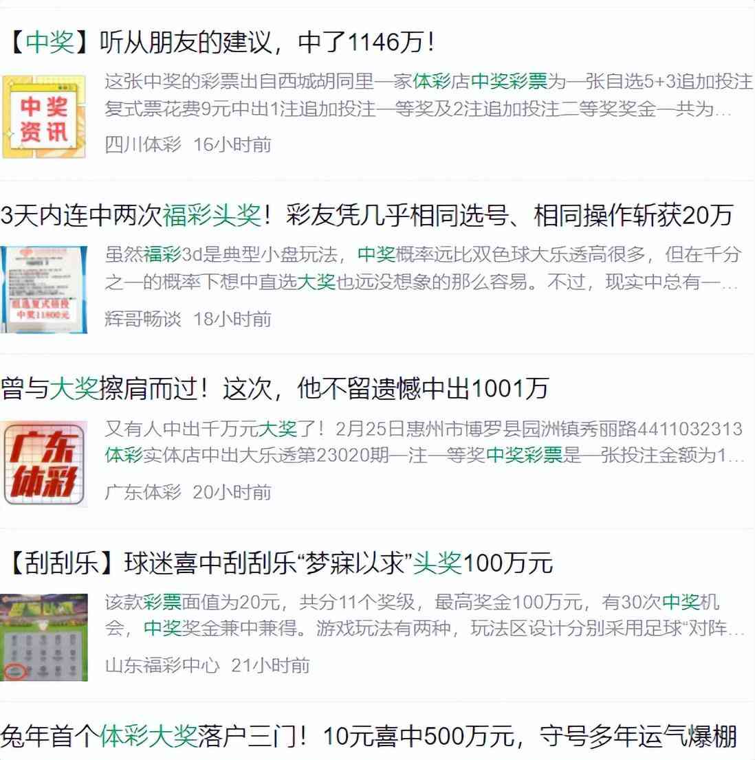 隨便搜索一下,就會(huì)發(fā)現(xiàn),彩票中獎(jiǎng)的新聞的確不少,有不少幸運(yùn)兒真的一夜暴富。