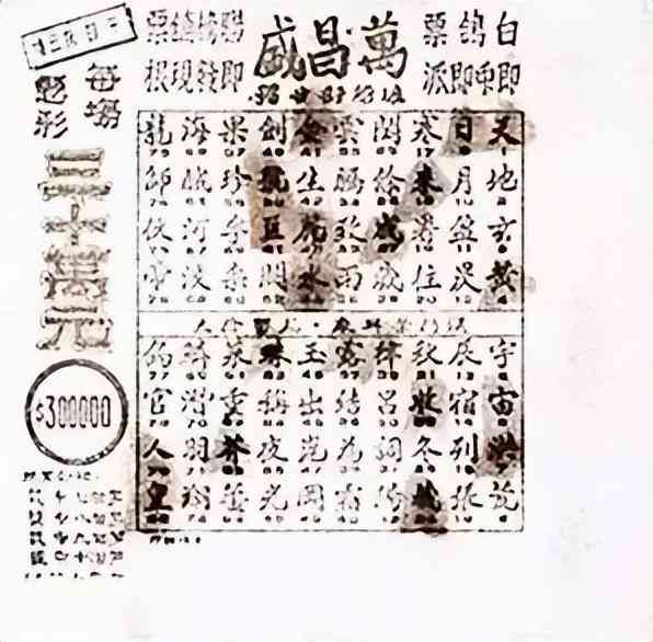 清朝時(shí)期,彩票之風(fēng)極盛,廣東流行一種名叫“白鴿票”的彩票,把《千字文》前 80 個(gè)字印在紙上,參賭者在票中圈出若干字號(hào),再由賭局開出字號(hào)若干。