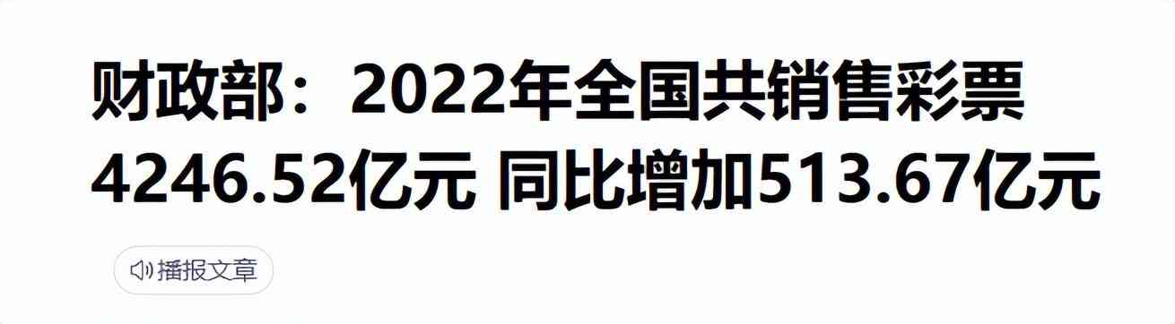 第三是增加稅收,2022 年,全國(guó)共銷售彩票 4246.52 億元,同比增加 513.67 億元,作為一個(gè)數(shù)千億級(jí)別市場(chǎng),彩票對(duì)國(guó)家財(cái)政有著不可忽視的作用。