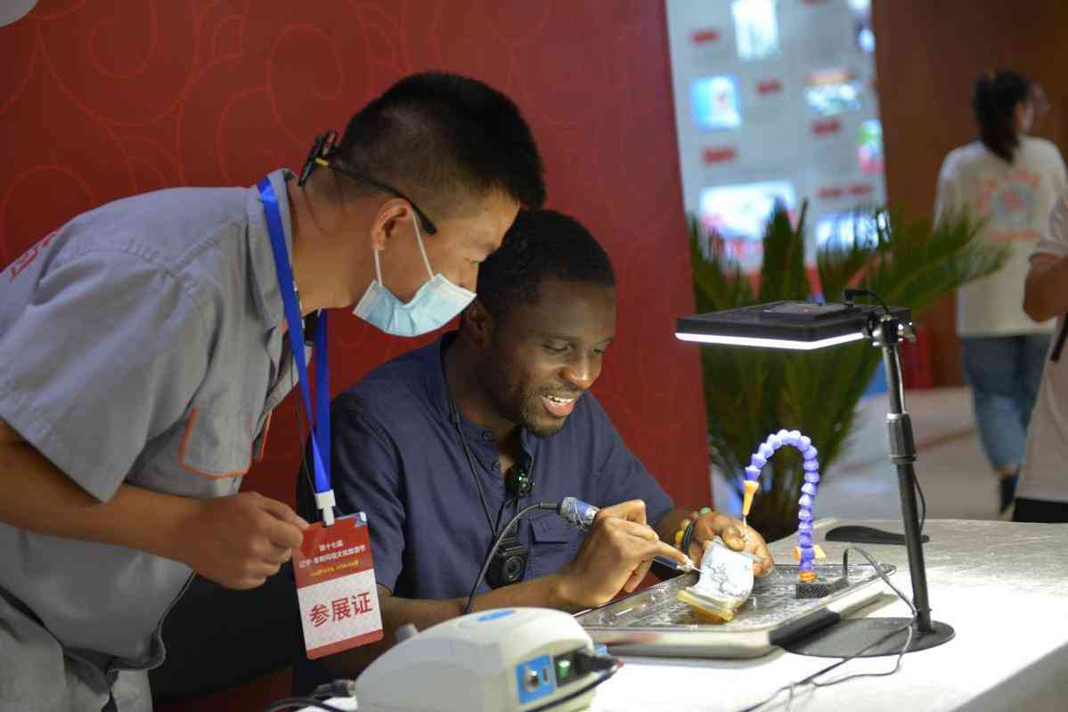 瑪瑙雕刻技藝現(xiàn)場展示活動火熱進(jìn)行,中外青年積極參與其中。