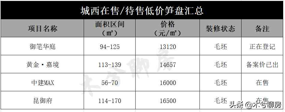 其中,即將登記的御筆華庭房?jī)r(jià)最低,只有13120元/㎡,其次是黃金·嘉境。